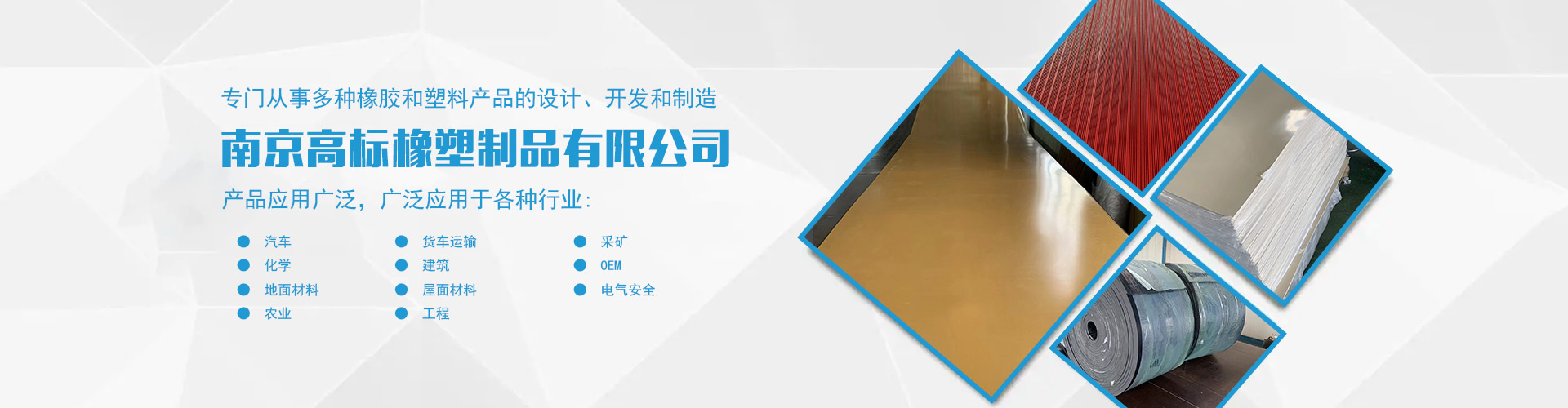 南京高標(biāo)橡塑制品有限公司是一家專業(yè)的橡膠板、橡膠制品和熱塑性塑料產(chǎn)品的制造商。主營(yíng)產(chǎn)品:三元乙丙橡膠板,丁腈橡膠版,氯丁橡膠板,丁苯橡膠板,丁基橡膠板,天然橡膠板,硅橡膠板,氟橡膠板,絕緣,防靜電,導(dǎo)電橡膠板,夾布,夾金屬網(wǎng)橡膠板,耐酸堿橡膠板,耐油橡膠板,耐磨橡膠板,阻燃橡膠板,阻尼橡膠板,減震橡膠板,防滑橡膠板,橡膠墊片等。 高標(biāo)橡塑專門(mén)從事多種橡膠和塑料產(chǎn)品的設(shè)計(jì)、開(kāi)發(fā)和制造。我們的產(chǎn)品應(yīng)用廣泛。廣泛應(yīng)用于各種行業(yè),包括:汽車(chē),貨車(chē)運(yùn)輸,采礦,化學(xué),建筑,OEM,地面材料,屋面材料,電氣安全,農(nóng)業(yè),工程等。 高標(biāo)橡塑的客戶服務(wù)于許多行業(yè),包括墊片切割、分銷(xiāo)商、工業(yè)用品零售商和批發(fā)商。自